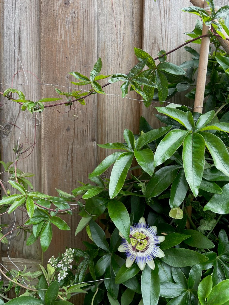 After my heart was stolen by a blue passion flower in my neighbour’s garden, I was thrilled to find some young ones starting on my side of the fence. But they took incredibly long to establish that I wanted to give up several times.