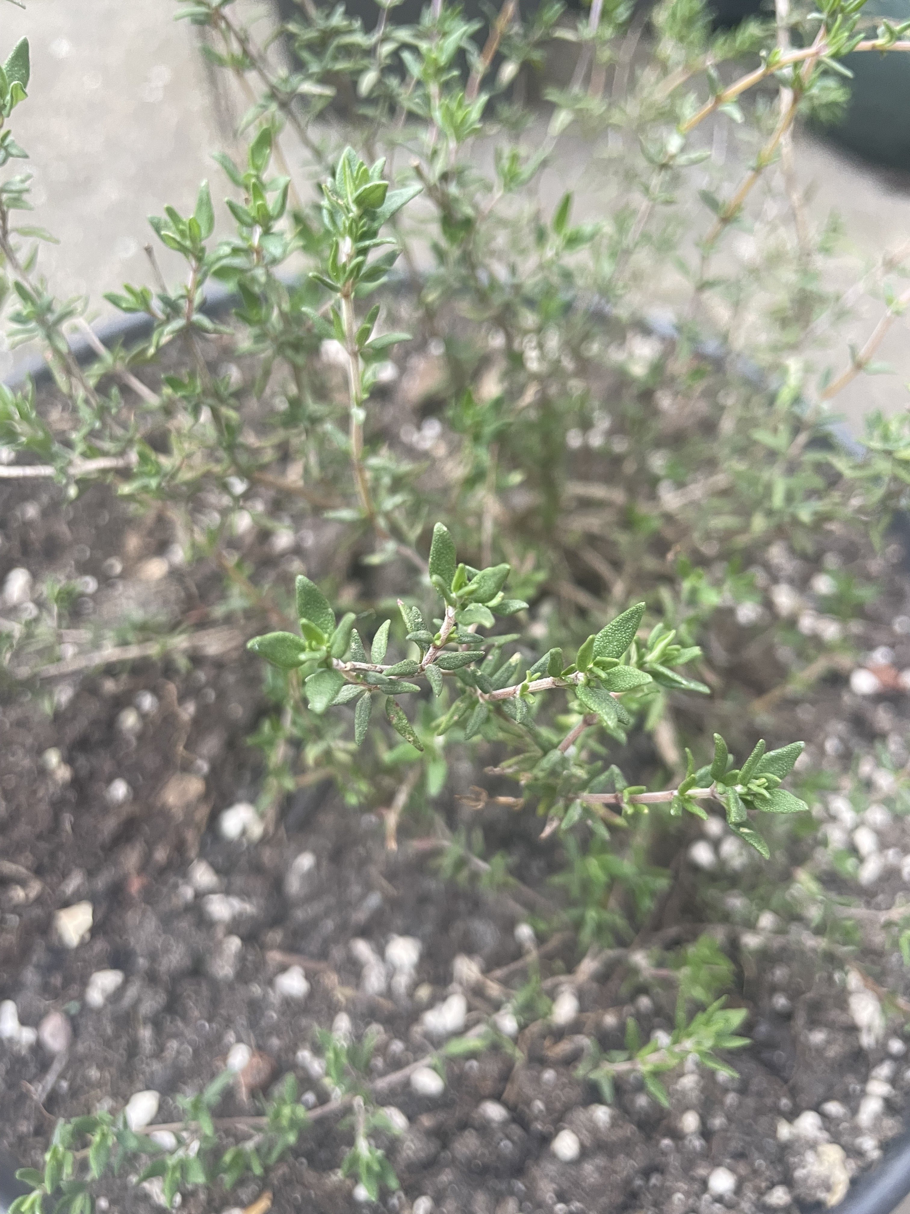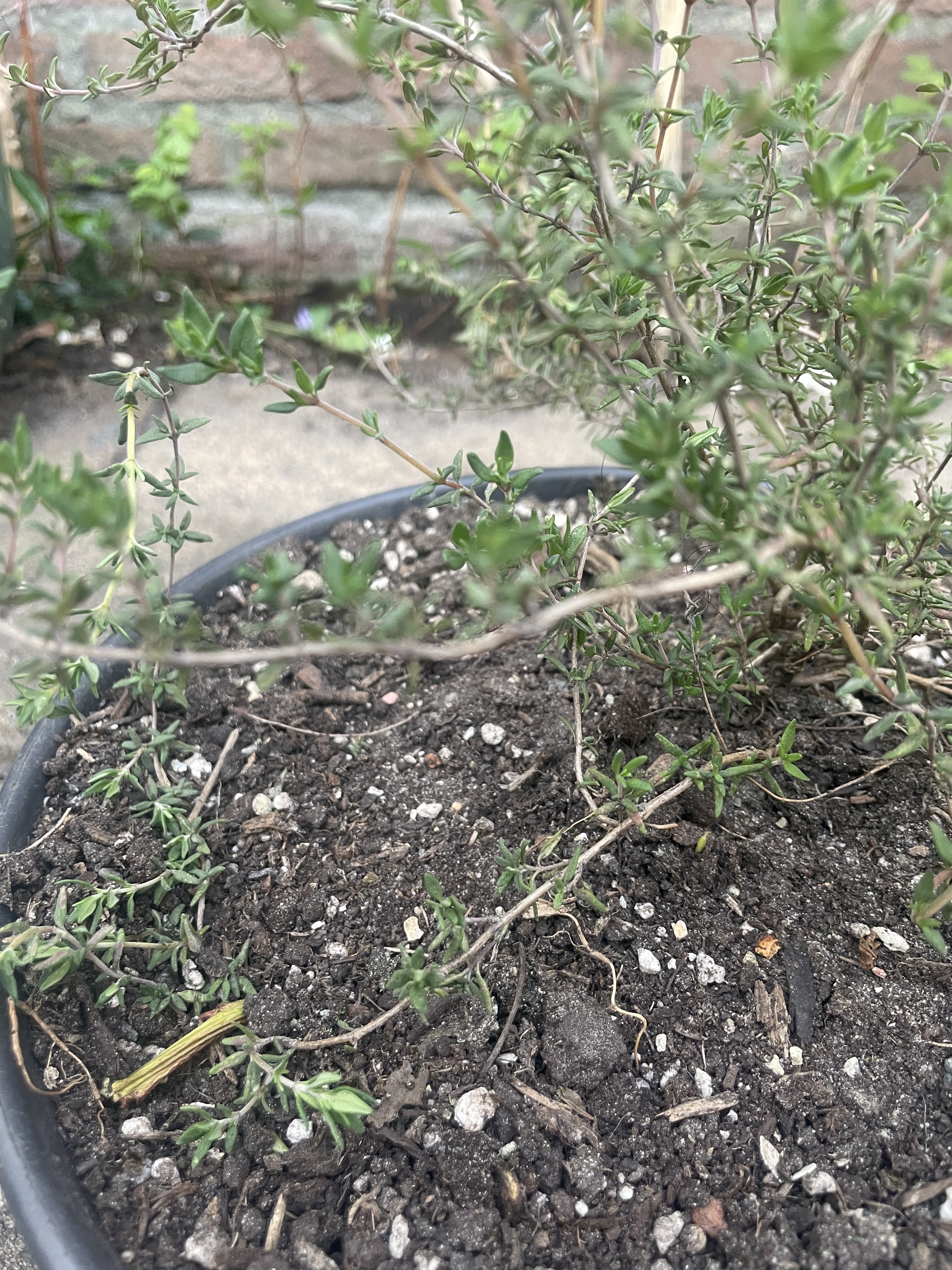 📐Pot size: Thyme is shallow-rooted, so you don’t need to use a very tall pot. It is more important to pick a pot with a larger surface as thyme naturally spreads its branches wide and low. (The extra space on the surface could be used later for layering new thyme plants.)