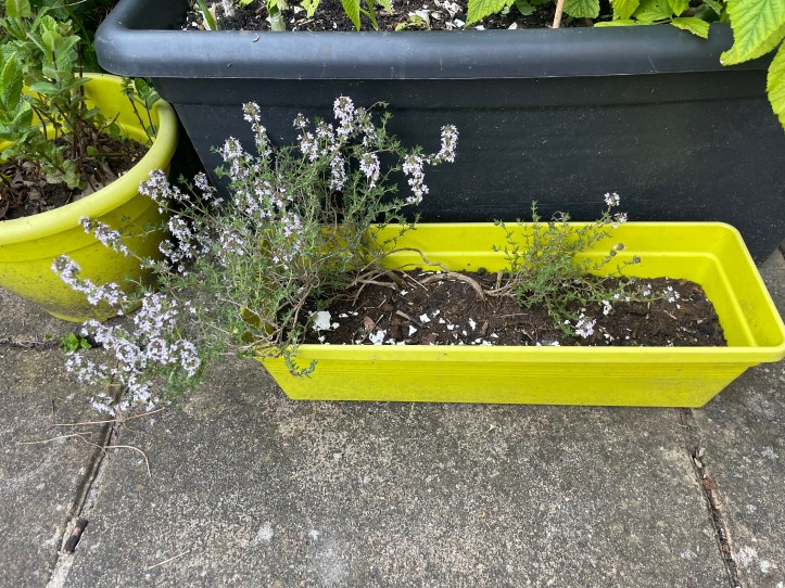 Thyme thrives in well-drained soil in a sunny spot. So that’s where we start 👇