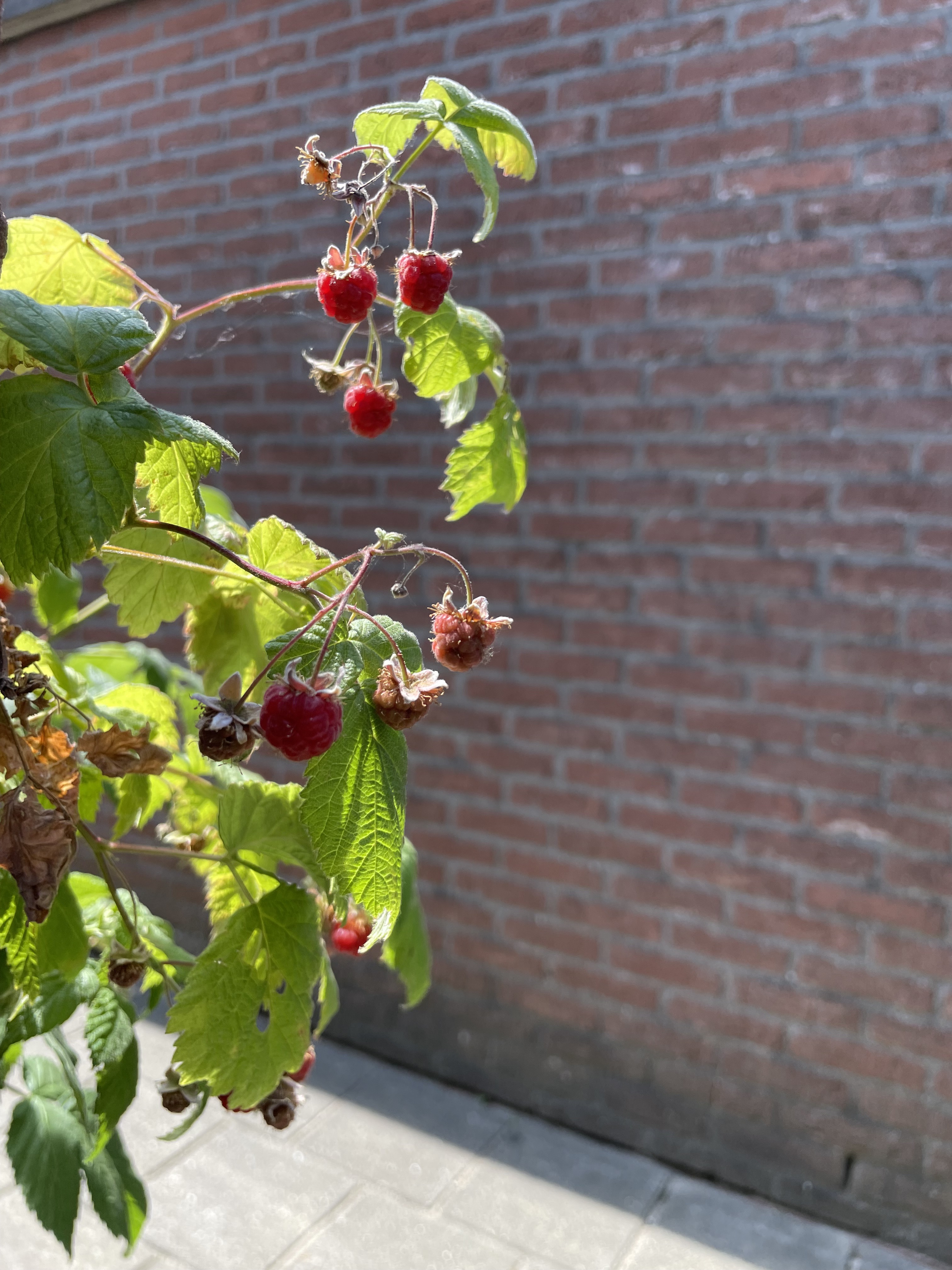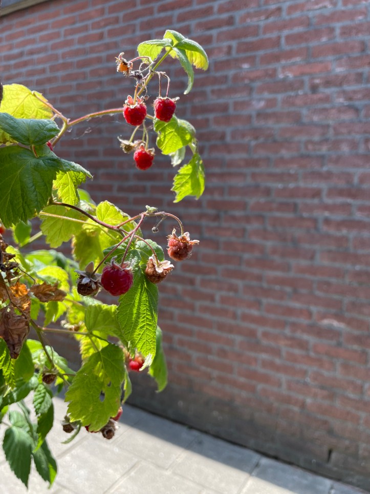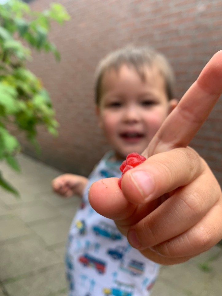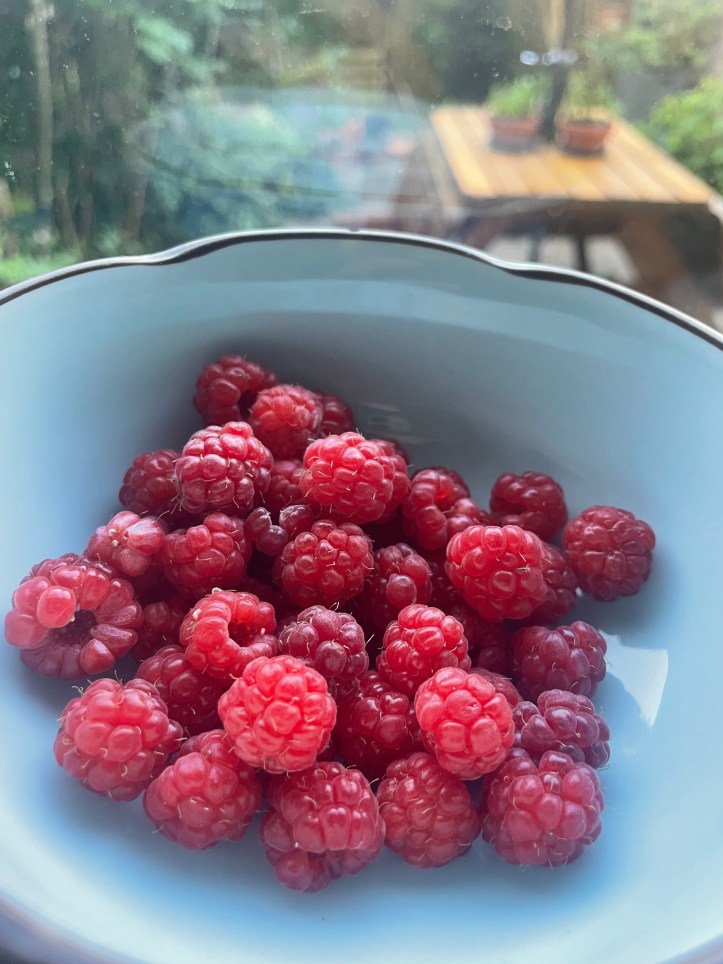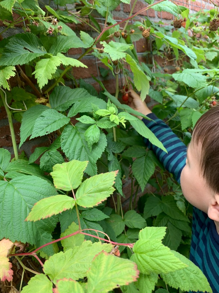On the key exchange day that October, we were briefly shown some bare canes on a tiny patch of soil running along one outer wall of our shed. I gave it absolutely no thought whatsoever then. Little did I know that “the patch” would be one of our best-kept treasures, from which my son gleams so many juicy berries and so much joy.