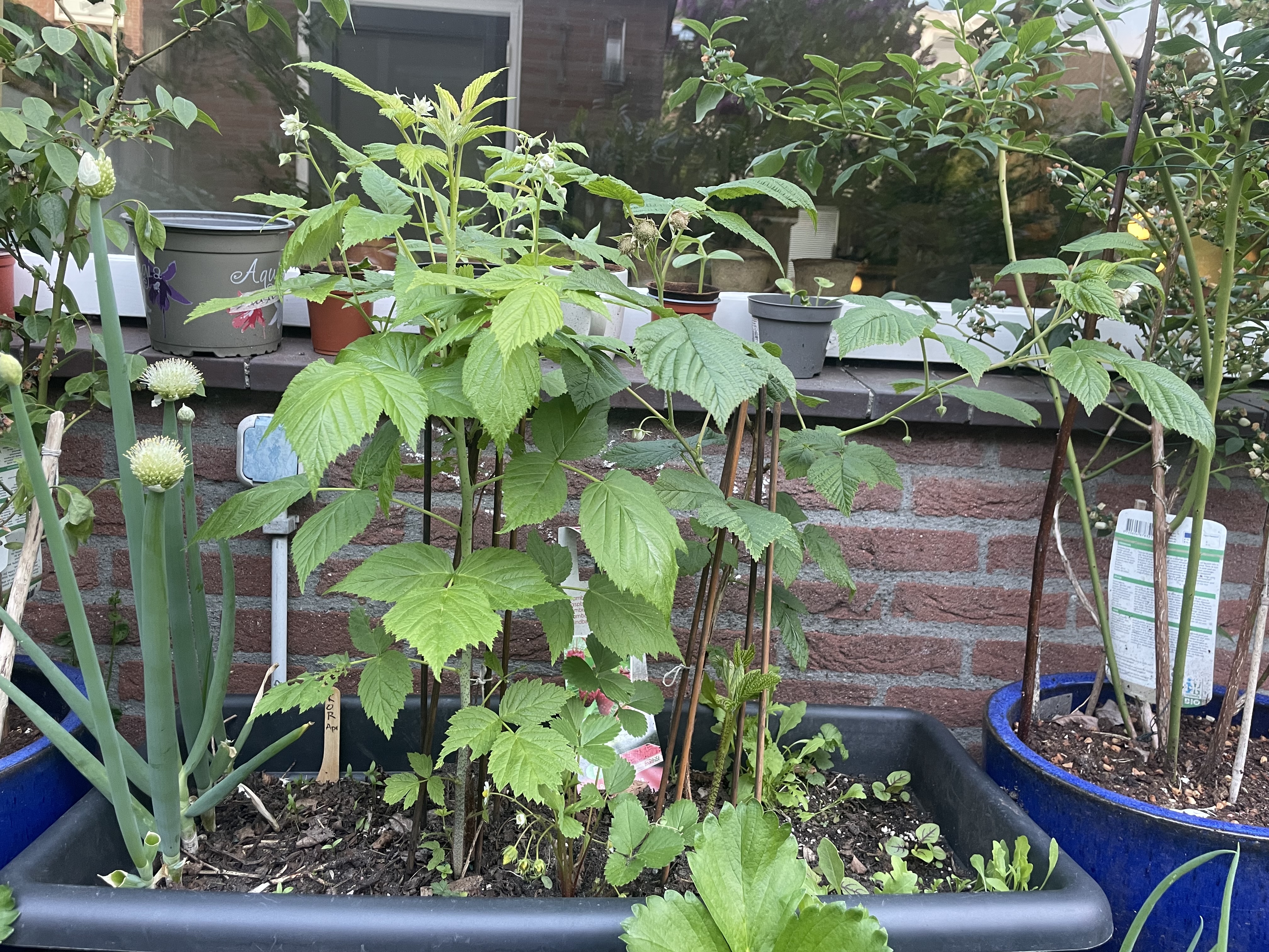 If you are curious about other plants that I intercrop with raspberries in this big container👆, check out our small raised bed planting package. It includes a detailed planting diagram (with autumn raspberry at the centre), key planting notes, the profiles of all the plants (fruits, vegetables, and herbs), and plant alternatives.