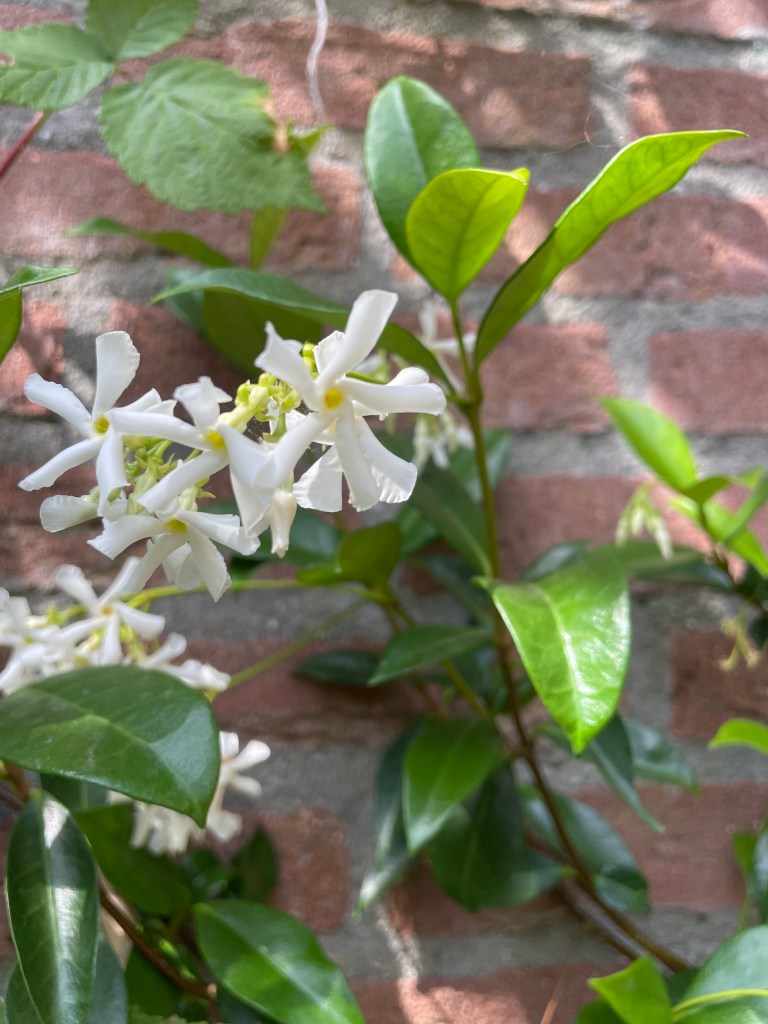 But this summer, I have really enjoyed the jasmine fragrance every time I sit at the garden bench next to the jasmine plants that I had put into the ground in the spring.