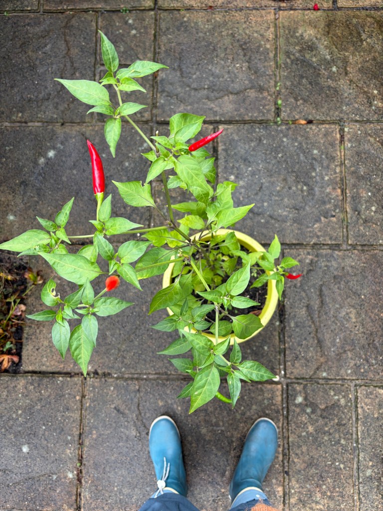 Growing bird’s eye chillies in pots means you can easily move them around — chasing the heat on sunny days, overnighting indoors if there is a sudden drop in temperature, and overwintering until it gets warm again in late spring.