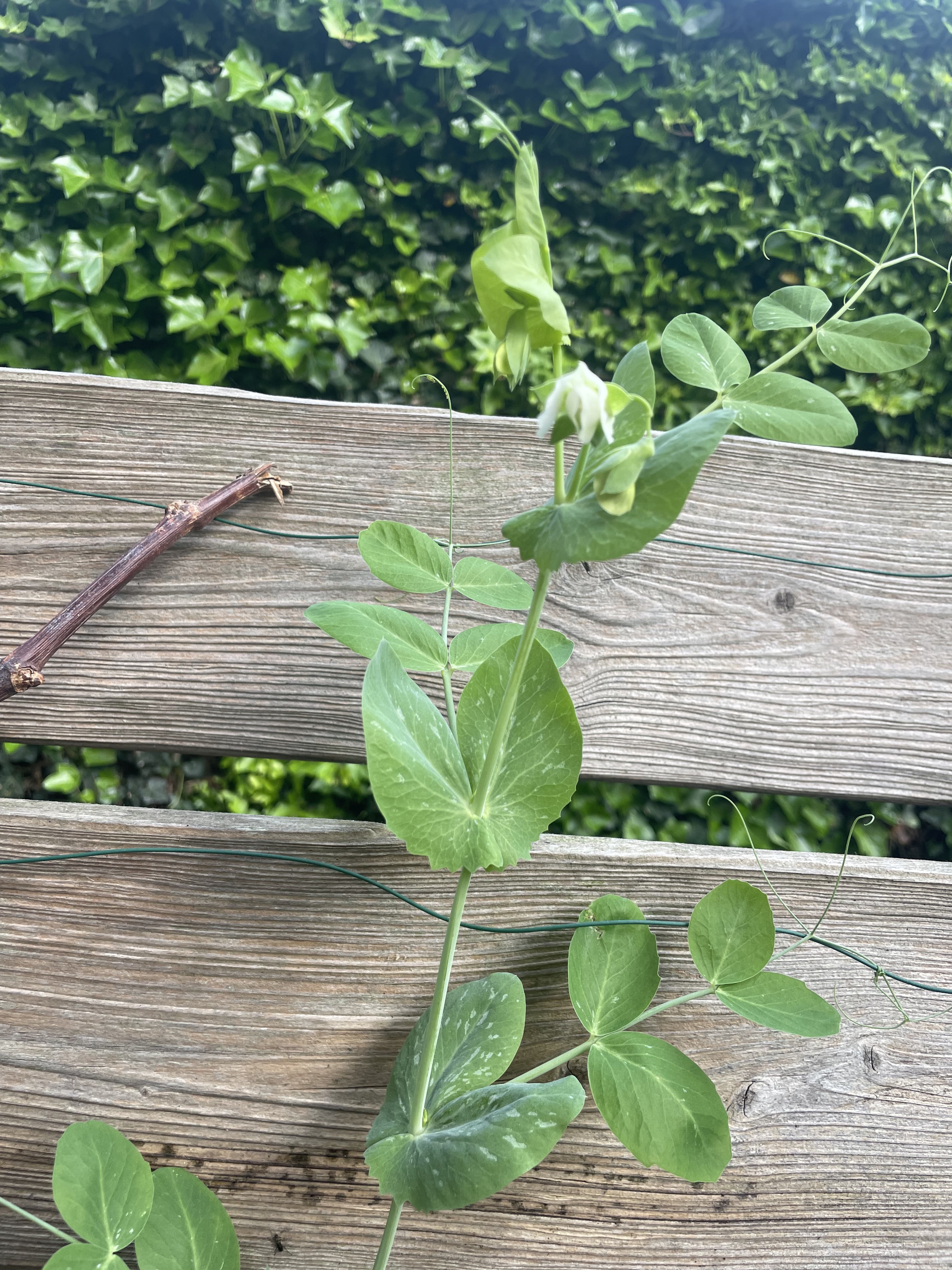 I had two pea plants last year. They didn’t grow tall, big, and bountiful because they were squeezed into tiny spaces in the garden’s shady parts. But I appreciated the beautiful flowers.